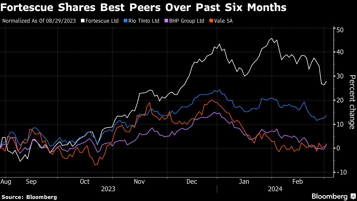 Fortescue Shares Best Peers Over Past Six Months Jackson Chen | March 3, 2024 | 5:01 pm Share Comments Cancel replyYour email address will not be published. Required fields are marked * Save my name, email, and website in this browser for the next time I comment. Δ No comments found. More News BHP’s Vicuna unveils $18 billion copper investment in Argentina The project is forecast to average 395,000 tons of copper, 711,000 ounces of gold, and 22.2 million ounces of silver annually over its first 25 years. February 16, 2026 | 01:26 pm {{ commodity.name }} {{ post.title }} {{ post.excerpt }} {{ post.date }} First < {{ page }} > Last