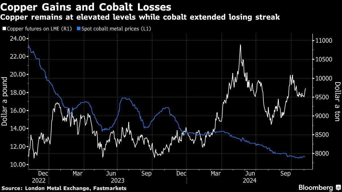 Copper Gains and Cobalt Losses | Copper remains at elevated levels while cobalt extended losing streak Bruno Venditti | November 6, 2024 | 6:19 am Share Comments Cancel replyYour email address will not be published. Required fields are marked * Save my name, email, and website in this browser for the next time I comment. Δ No comments found. More News BHP’s Vicuna unveils $18 billion copper investment in Argentina The project is forecast to average 395,000 tons of copper, 711,000 ounces of gold, and 22.2 million ounces of silver annually over its first 25 years. February 16, 2026 | 01:26 pm {{ commodity.name }} {{ post.title }} {{ post.excerpt }} {{ post.date }} First < {{ page }} > Last