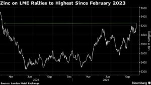Zinc on LME Rallies to Highest Since February 2023 Bruno Venditti | October 24, 2024 | 7:32 am Share Comments Cancel replyYour email address will not be published. Required fields are marked * Save my name, email, and website in this browser for the next time I comment. Δ No comments found. More News BHP’s Vicuna unveils $18 billion copper investment in Argentina The project is forecast to average 395,000 tons of copper, 711,000 ounces of gold, and 22.2 million ounces of silver annually over its first 25 years. February 16, 2026 | 01:26 pm {{ commodity.name }} {{ post.title }} {{ post.excerpt }} {{ post.date }} First < {{ page }} > Last