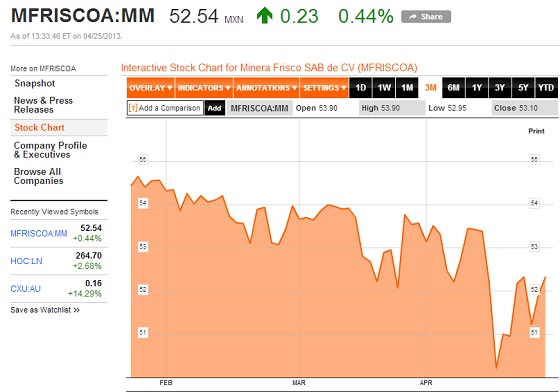 Minera Frisco MINING.com Editor | April 25, 2013 | 5:57 pm Share Comments Cancel replyYour email address will not be published. Required fields are marked * Save my name, email, and website in this browser for the next time I comment. Δ No comments found. More News Trafigura’s Nyrstar ships first antimony batch from Australia plant The Port Pirie facility has the potential to produce up to 5,000 tons of antimony per year. February 16, 2026 | 07:16 am {{ commodity.name }} {{ post.title }} {{ post.excerpt }} {{ post.date }} First < {{ page }} > Last