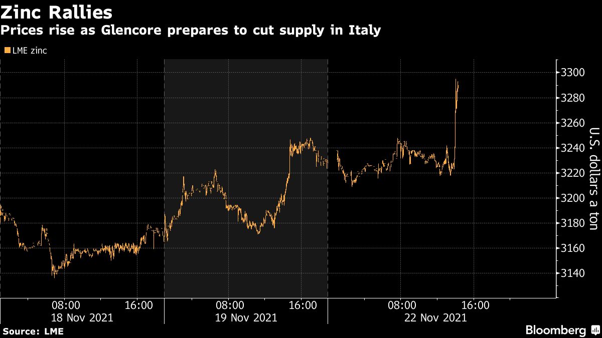 Prices rise as Glencore prepares to cut supply in Italy